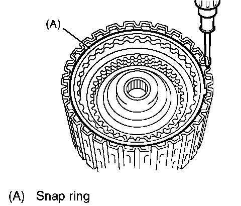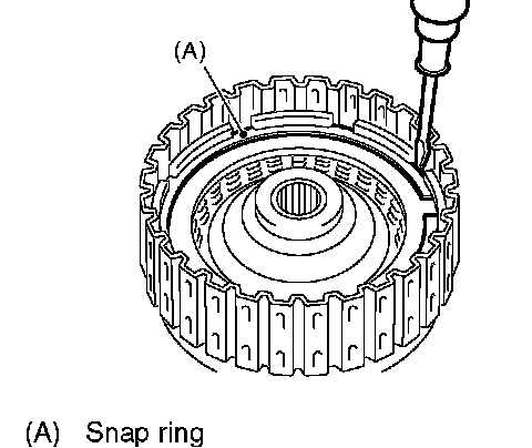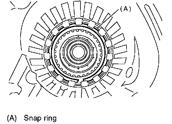 2. Remove the snap ring, and then take out the retaining plate, drive plate and driven plate.