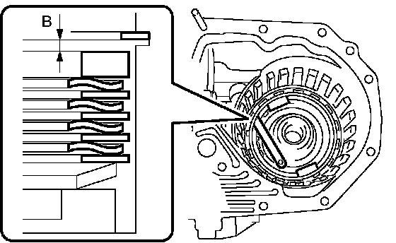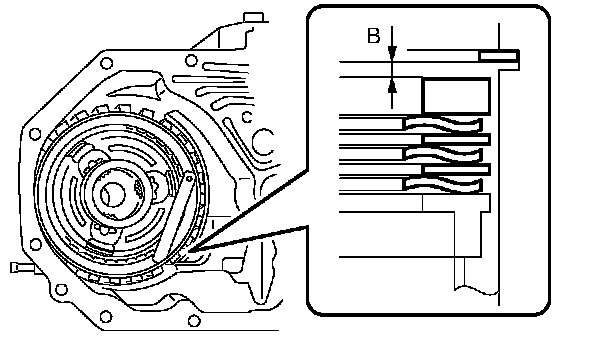 32. Measure and record the clearance B between the retaining plate and snap ring.