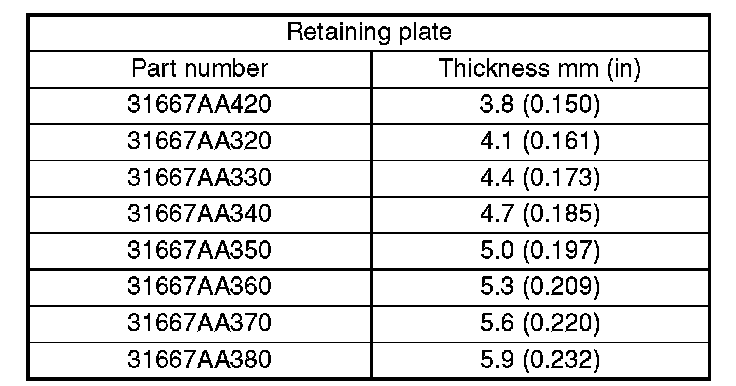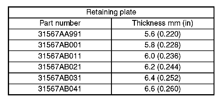 Select the retaining plate within the specification by calculating with A and B dimensions which have been recorded before. If the calculated value exceeds the usage limit, replace the drive plate with a new one and adjust it within the specification.
