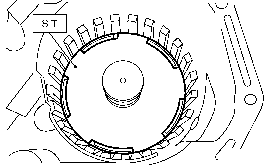 21. Position the snap ring in transmission. Using the ST, press the snap ring into specified place.