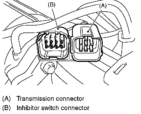 4. Lift-up the lever on the rear side of transmission harness connector, and then disconnect it from the stay.