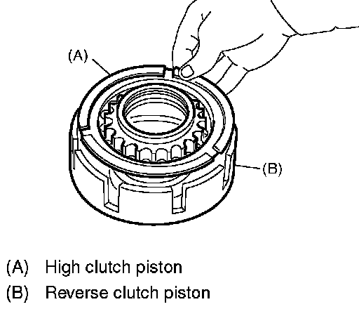 5. Remove the seal ring and lip seal from the high clutch piston and reverse clutch piston.