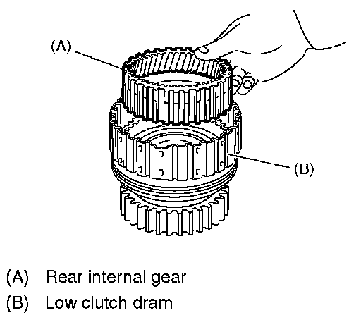 Install carefully while slowly rotating the low clutch and planetary gear assembly paying special attention not to damage the seal ring.