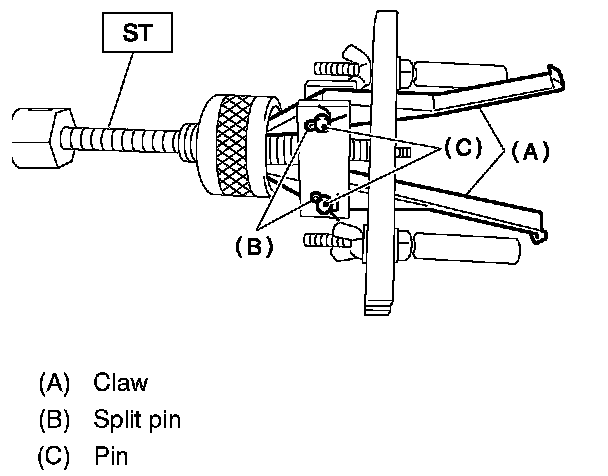 6. Hold the shaft of ST to avoid removing from side retainer, and then remove the bearing outer race.