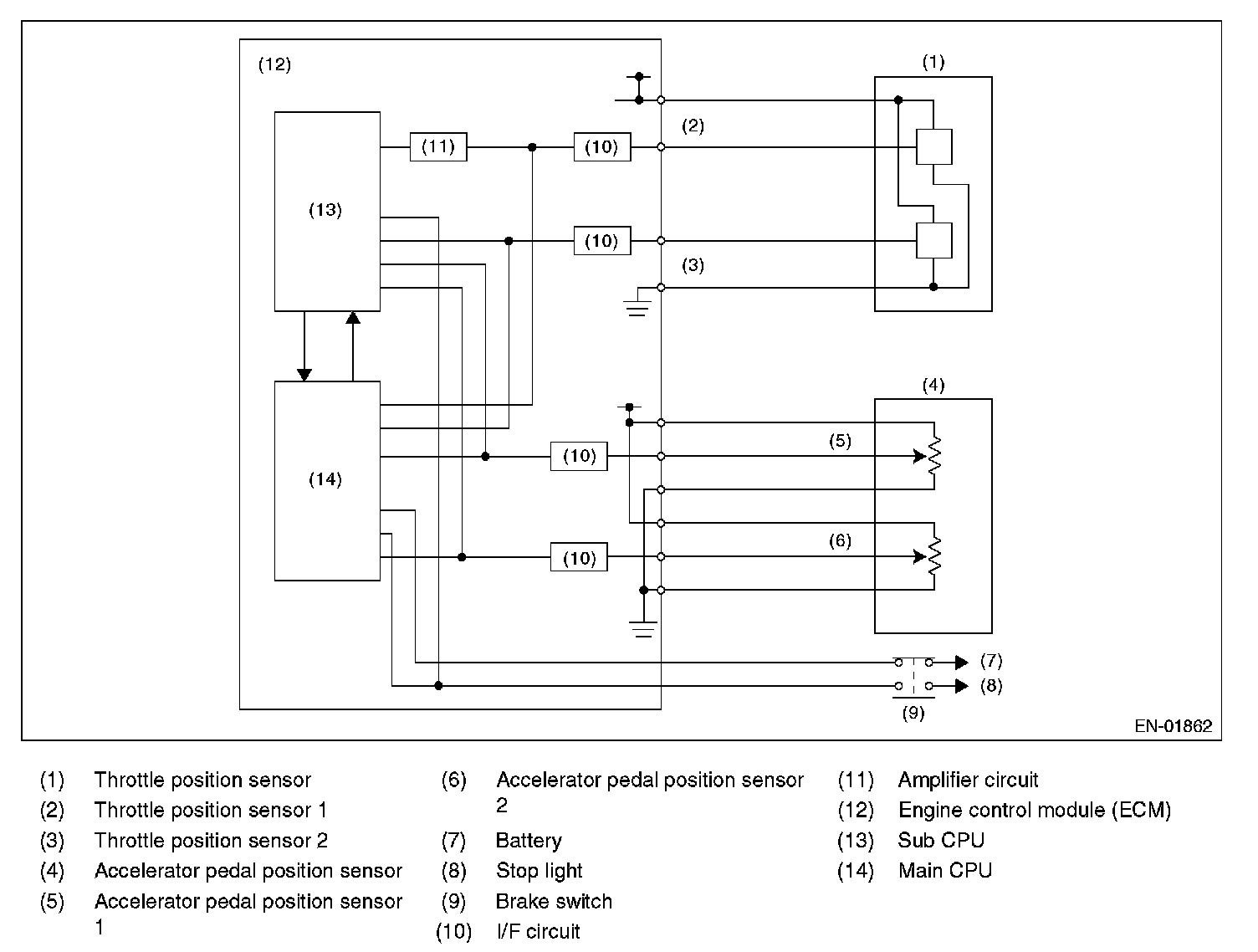 - When the read value of throttle position sensor 1 signal is mismatched between main CPU and sub CPU.