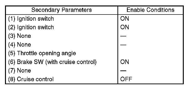 (8): Always perform the diagnosis continuously when the cruise control pedal is not operating.