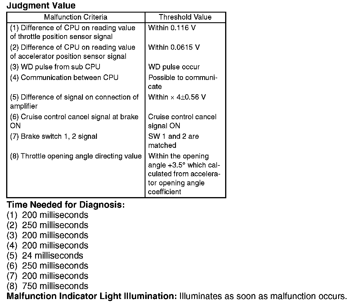 - When the read value of accelerator position sensor 1 signal is mismatched between main CPU and sub CPU.