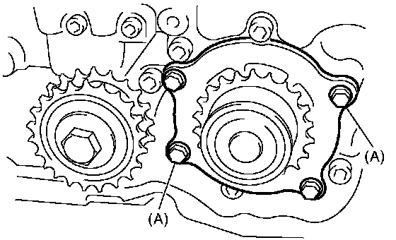 NOTE: When the water pump cannot be removed easier, screw-in the bolts (A) to screw part to remove water pump.