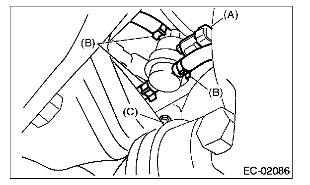 5. Disconnect the evaporation hose (B) from pressure control solenoid valve.