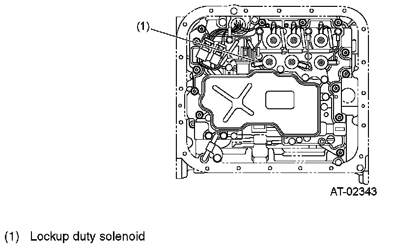 This solenoid is mounted on the transmission control valve. Its duty ratio is controlled by signals from the