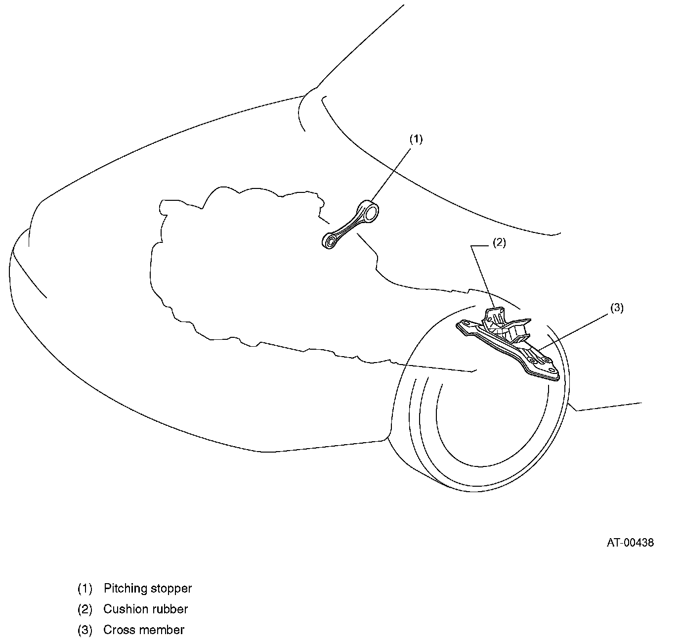 The transmission mounting consists of a pitching stopper, cushion rubber, and a cross member.