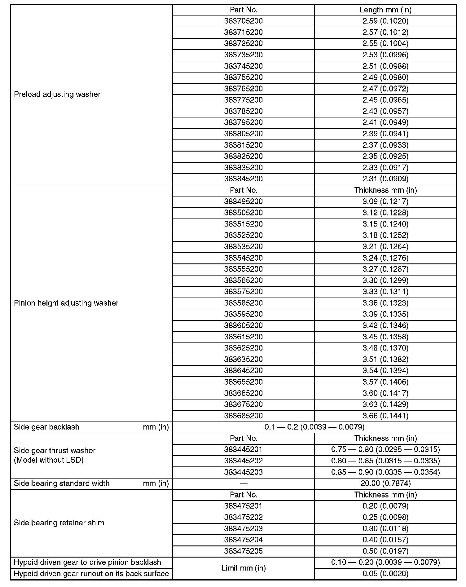 Adjusting Shims & Washers