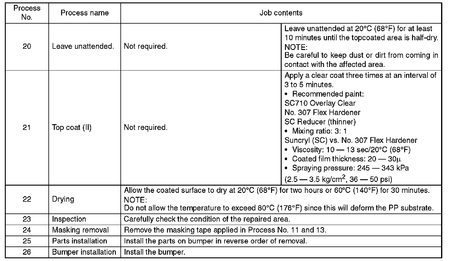 2. REPAIR INSTRUCTIONS FOR COLORED PP BUMPER