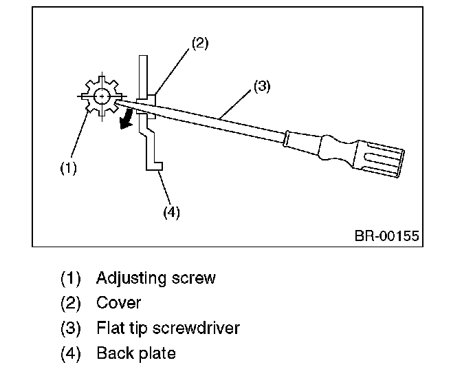 (1) Turn the adjusting screw using a flat tip screwdriver until brake shoe gets away enough from the disc rotor.