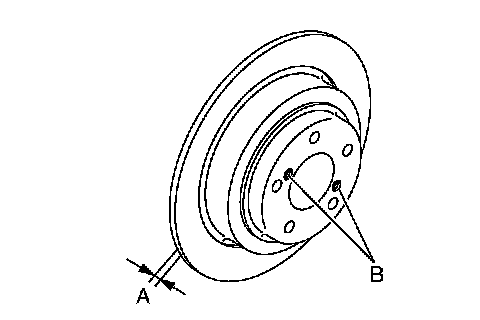 (2) If the disc rotor seizes up within hub, drive the disc rotor out by installing an 8-mm bolt in holes B on rotor.