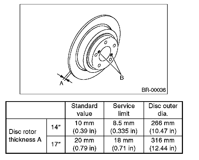 Disc rotor runout limit: 0.070 mm (0.0027 inch)