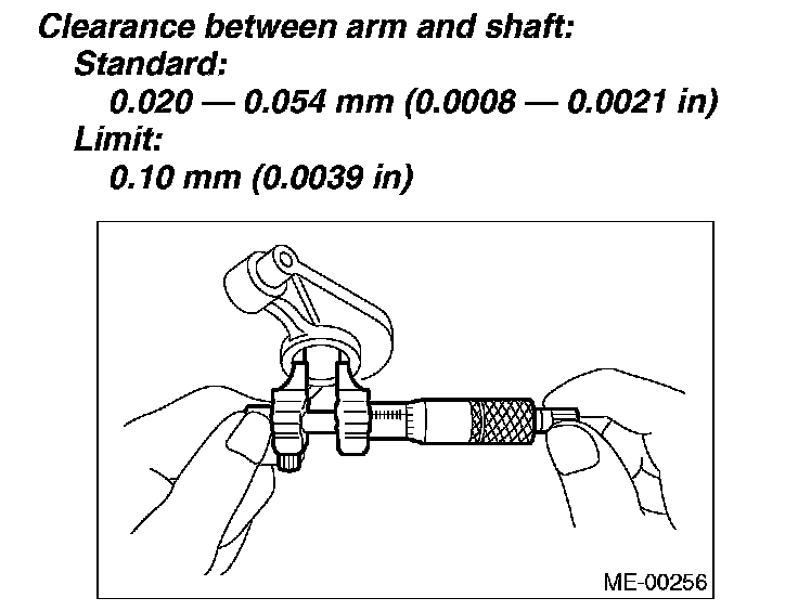 2) If the oil clearance exceeds the limit, replace the valve rocker arm or shaft, whichever shows greater amount of wear.