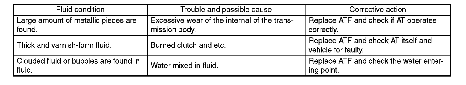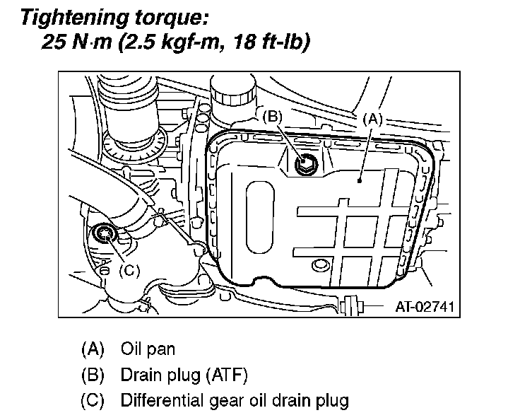 NOTE: When replacing ATF, check the inside condition of the transmission body by inspecting the drained ATF.