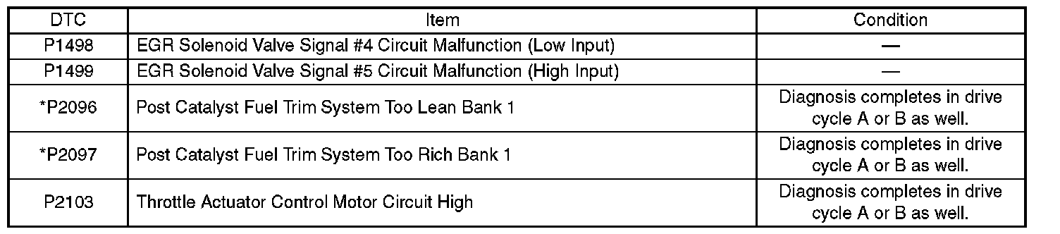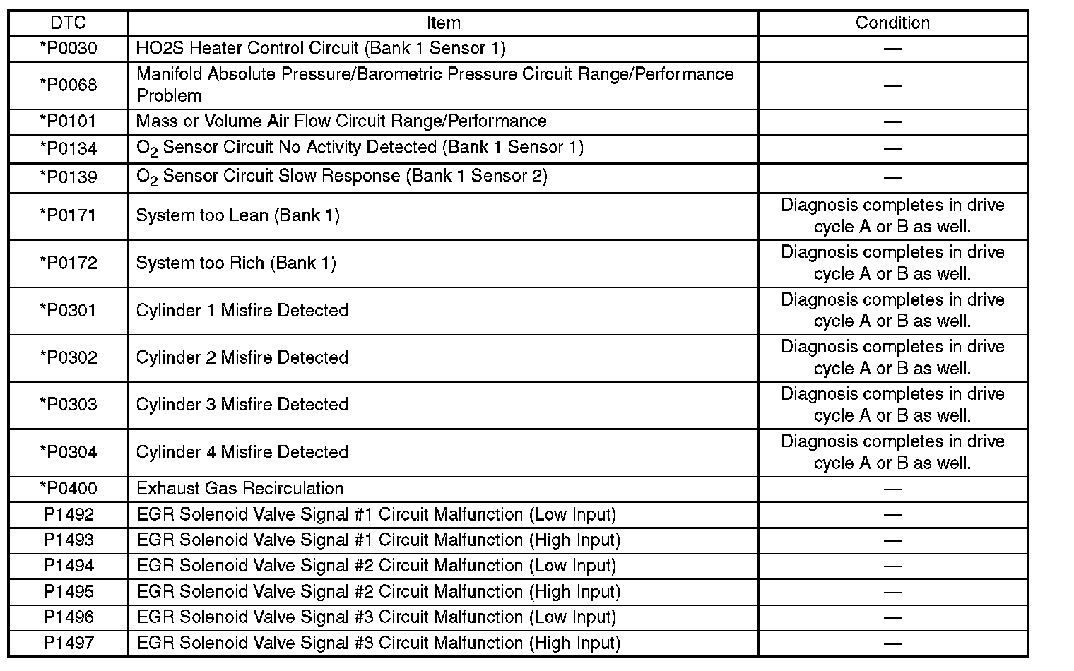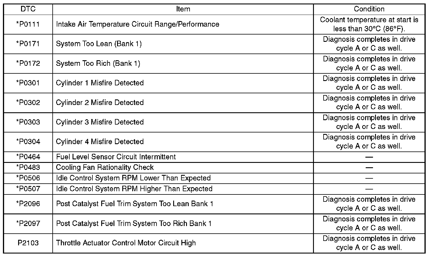 - Carry out the diagnosis which is marked * on DTC twice, then, after finishing first diagnosis, stop the engine and do second time at the same condition.