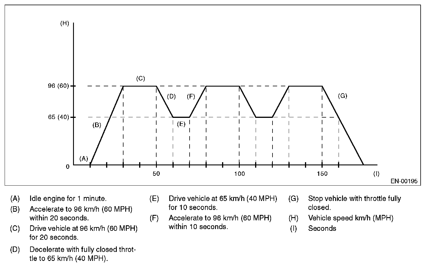 DRIVE CYCLE A (AFTER RUNNING 20 MINUTES AT 80 KM/H (50 MPH), IDLE ENGINE FOR 1 MINUTE.)
