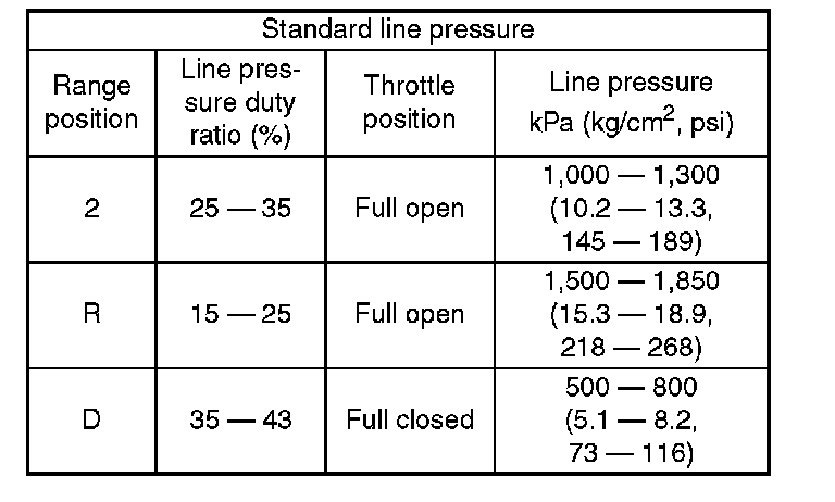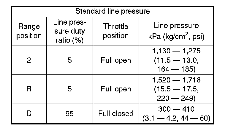 2. Measure the line pressure when select lever is in R or 2 with engine under stall conditions.