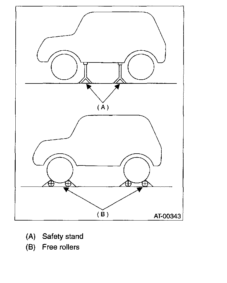 ^ In order to prevent the vehicle from slipping due to vibration, do not place any wooden blocks or similar items between the safety stands and the vehicle.
