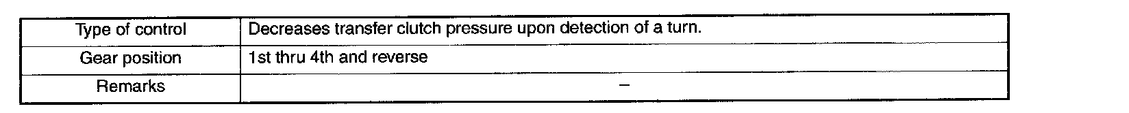 ^ The TCM has pre-programmed lock-up clutch engagement and disengagement conditions for each gear and shift pattern. In addition, it specifies engagement of the clutch whenever the 4th gear is selected in the D range. The engagement and disengagement conditions are defined in terms of the throttle valve position and vehicle speed.
