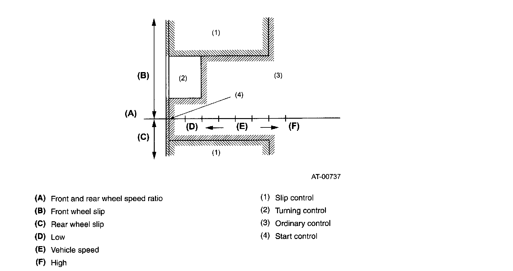 When the vehicle speed is 0 km/h (0 MPH), the TCM makes control to generate differential action limiting torque that is proportional to the throttle angle.