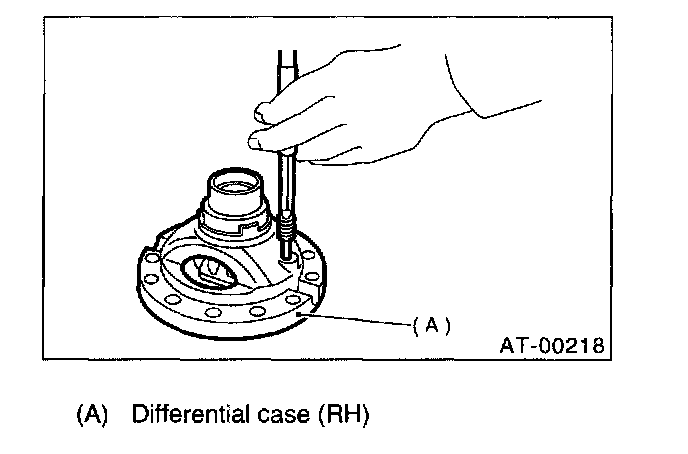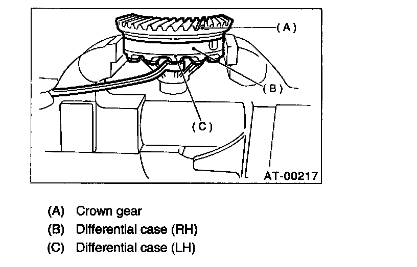 1)Install the differential assembly to the case, paying special attention not to damage the inside of the case (particularly, the differential side retainer contact surface).