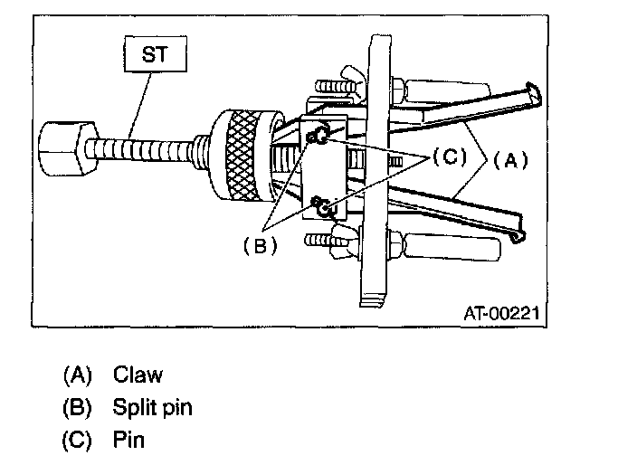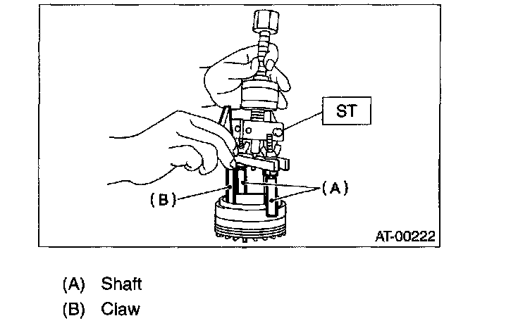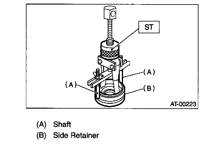 6) Hold the shaft of ST to avoid it coming off from side retainer, and then remove the bearing outer race.