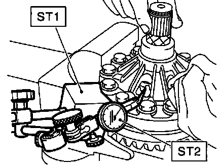 8) Turn the drive pinion several rotations with ST1 and check to see if the backlash is within the standard value with ST2,ST3,ST4 and ST5.
