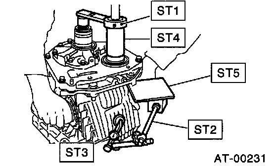 5) Rotate the drive pinion several times with ST1 and ST2.