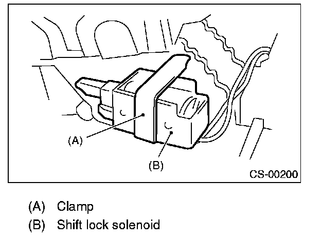 10. Remove the clamp, and then remove the shift lock solenoid.