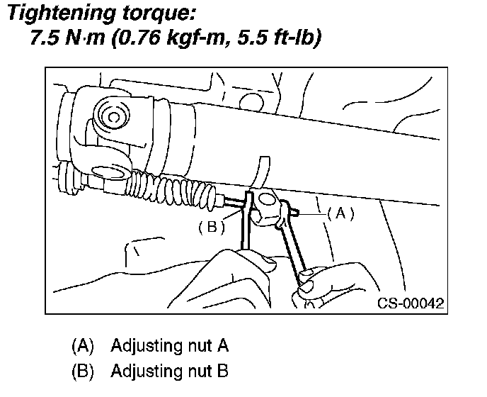 6. While preventing the adjusting nut B from moving with a wrench, tighten the adjusting nut A.