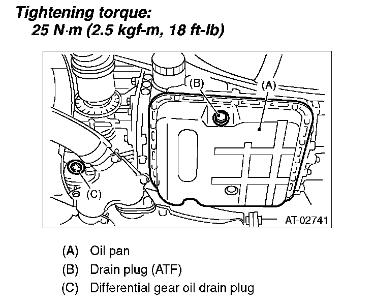 ^ Tighten the ATF drain plug after draining the ATF.