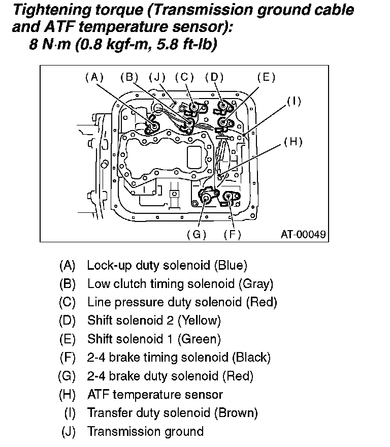 Tightening torque (Transmission ground cable and ATF temperature sensor): 8 Nm (0.8 kgf-m, 5.8 ft. lbs.)