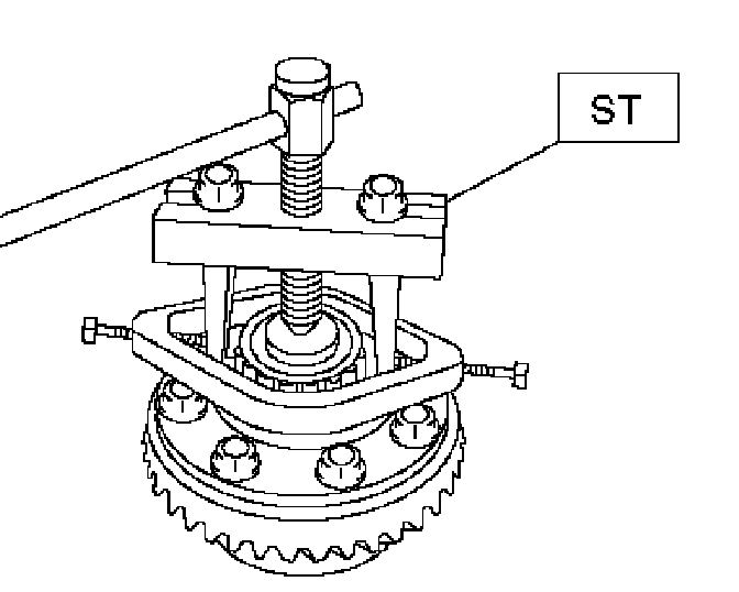 5. Make right and left side bearing retainers in order to identify them at reassembly. Remove the side bearing retainer attaching bolts, set the ST to differential case, and extract right and left side bearing retainers with a puller.