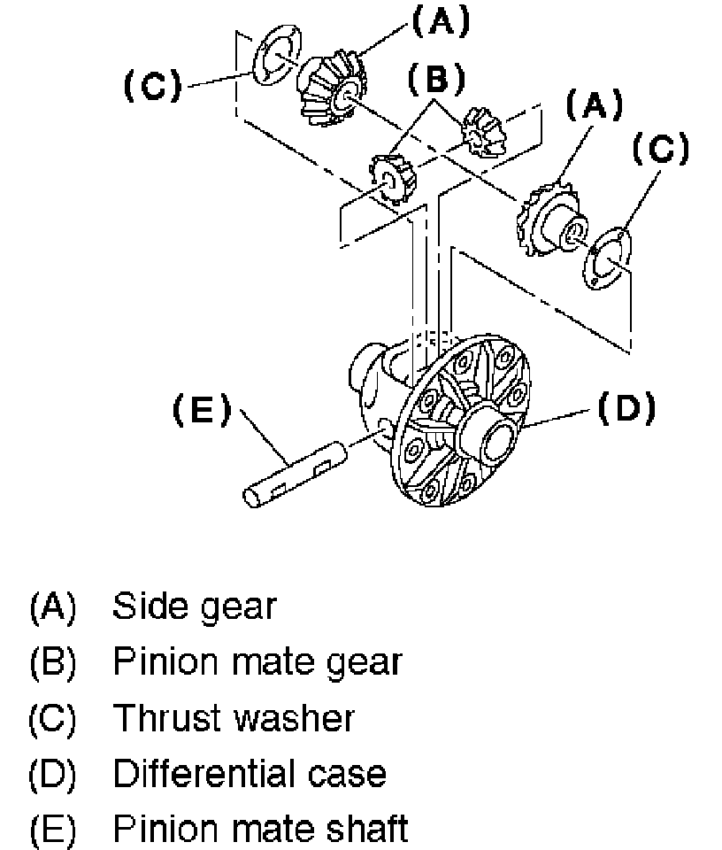 NOTE: The gears as well as thrust washers should be marked or kept separated right and left, front and rear.