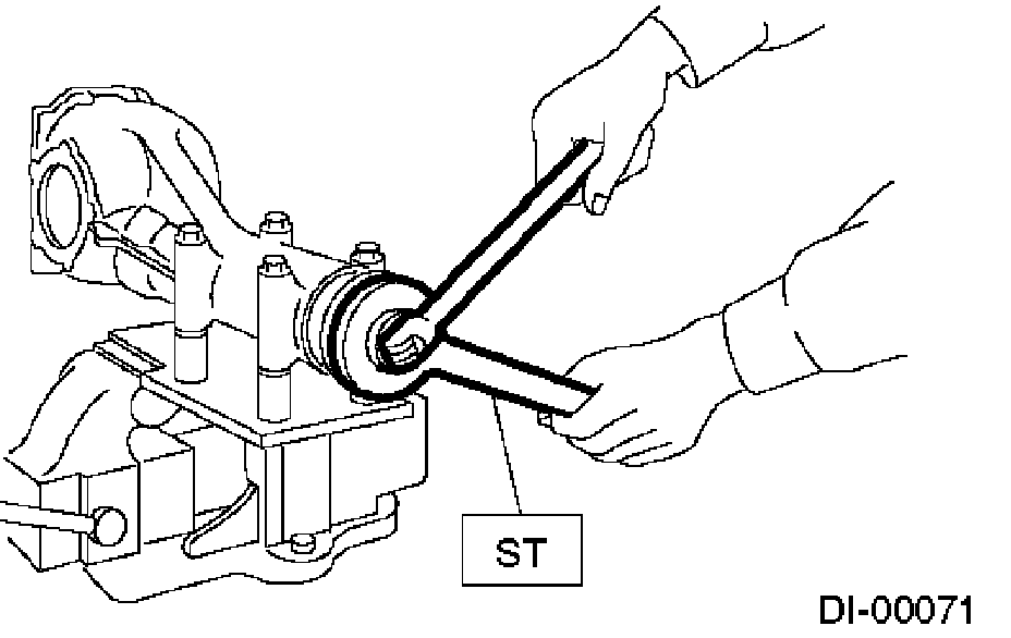 12. Hold the companion flange with ST and remove the drive pinion nut.