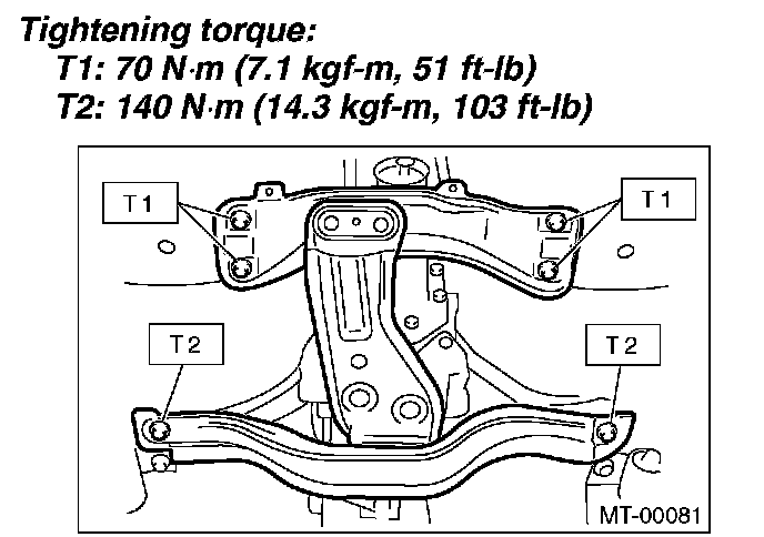 T2: 58 Nm (5.9 kgf-m, 43 ft. lbs.)