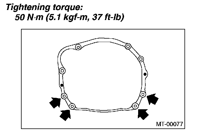 Tightening torque: 50 Nm (5.1 kgf-m, 37 ft. lbs.)
