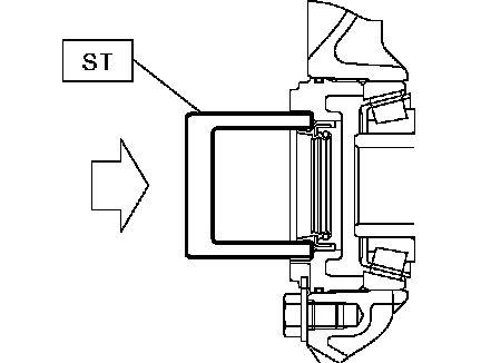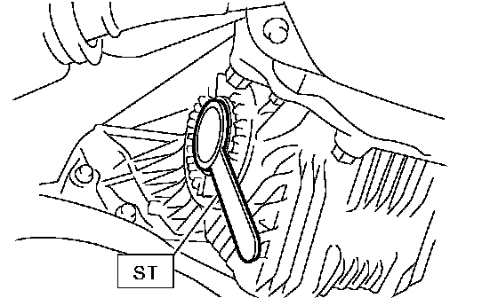 NOTE: Be sure to replace the differential side retainer oil seal after the procedure of removing the front drive shaft.