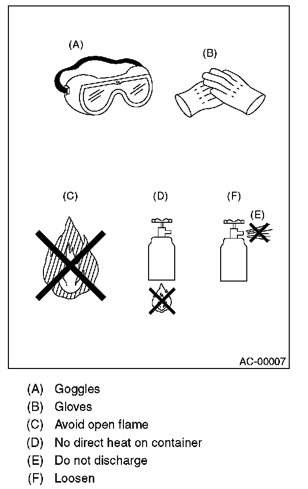 - Do not drop or subject a service can to impacts. (Observe the precautions and operation procedure described on the refrigerant can.)