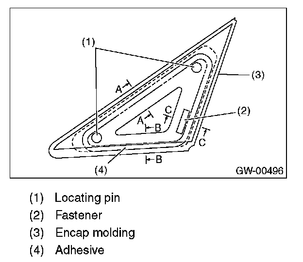 - For minimum drying time and vehicle standing time before driving after bonding, follow instructions or instruction manual from the adhesive manufacturer.