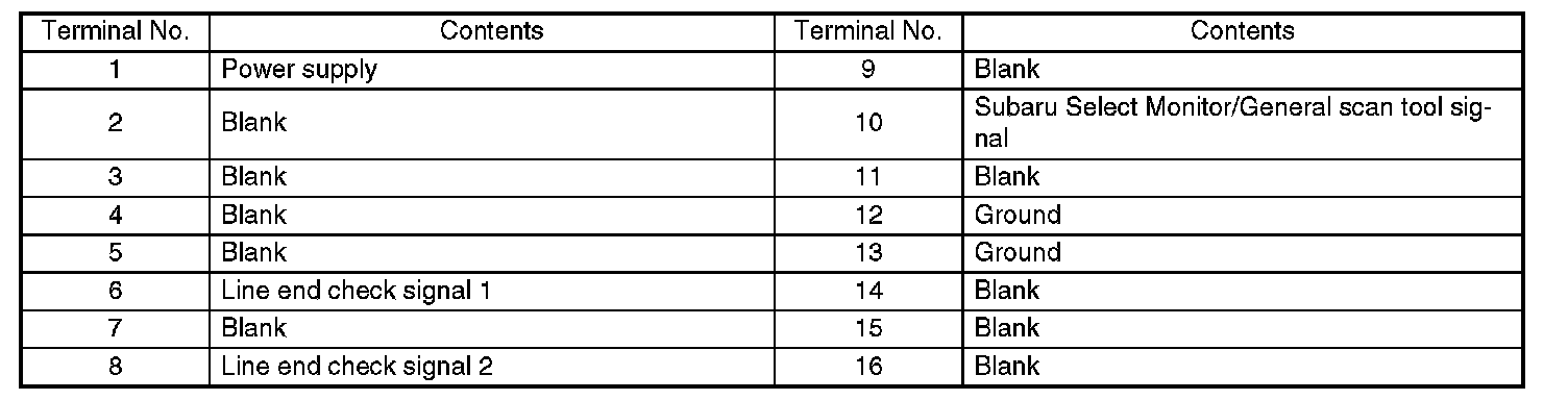 Data Link ConnectorNOTE: This connector is used both for the general scan tools and Subaru Select Monitor.