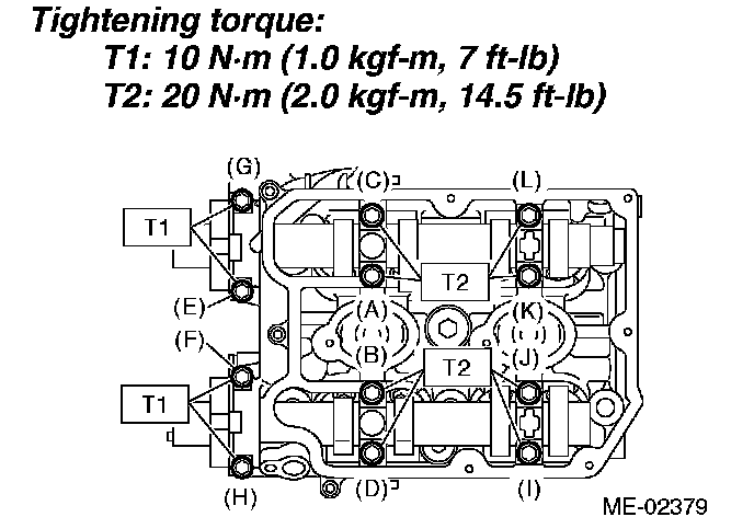 Tighten all bolts 69 Nm (7.0 kgf-m, 51 ft. lbs.) in alphabetical sequence again.