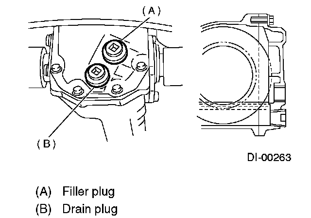 1. Take out filler plug, and replace gear oil if it is contaminated or deteriorated.
