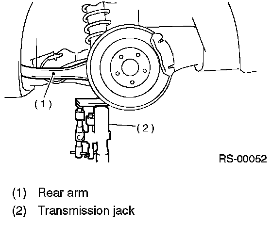 3. Using transmission Jack, support rear arm horizontally and tighten nuts and bolts securing rear arm, link front, link rear, link upper and shock absorber.
