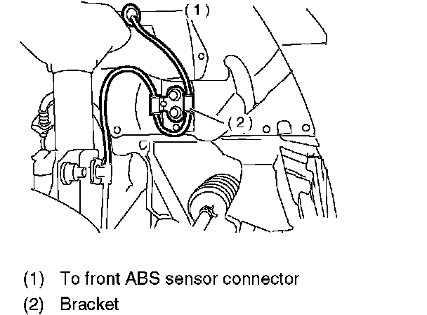 2. Install front ABS sensor on strut and wheel apron bracket.