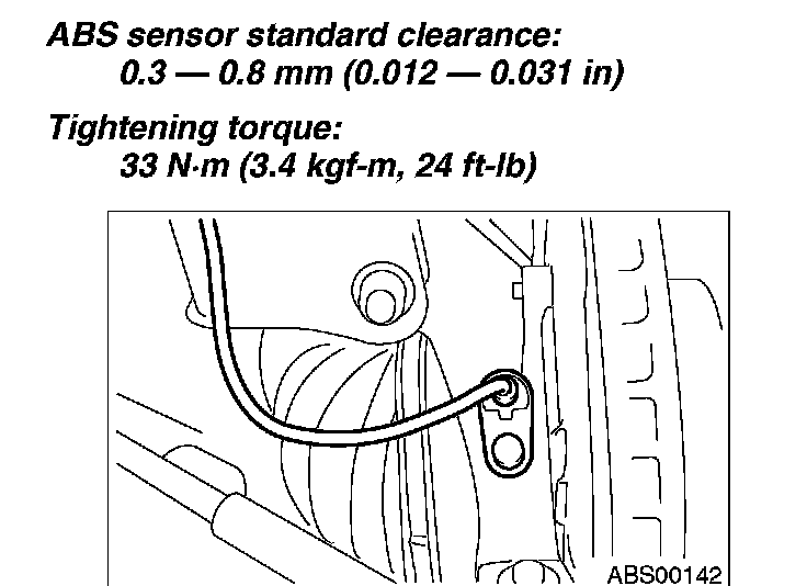 ABS sensor standard clearance: 0.3 - 0.8 mm (0.012 - 0.031 inch)